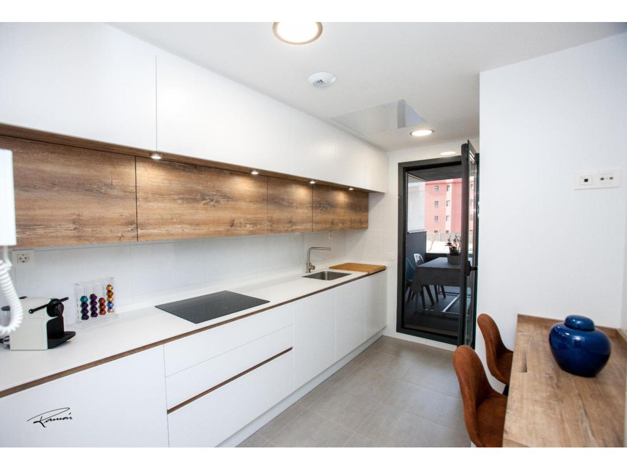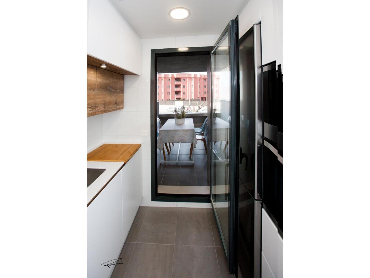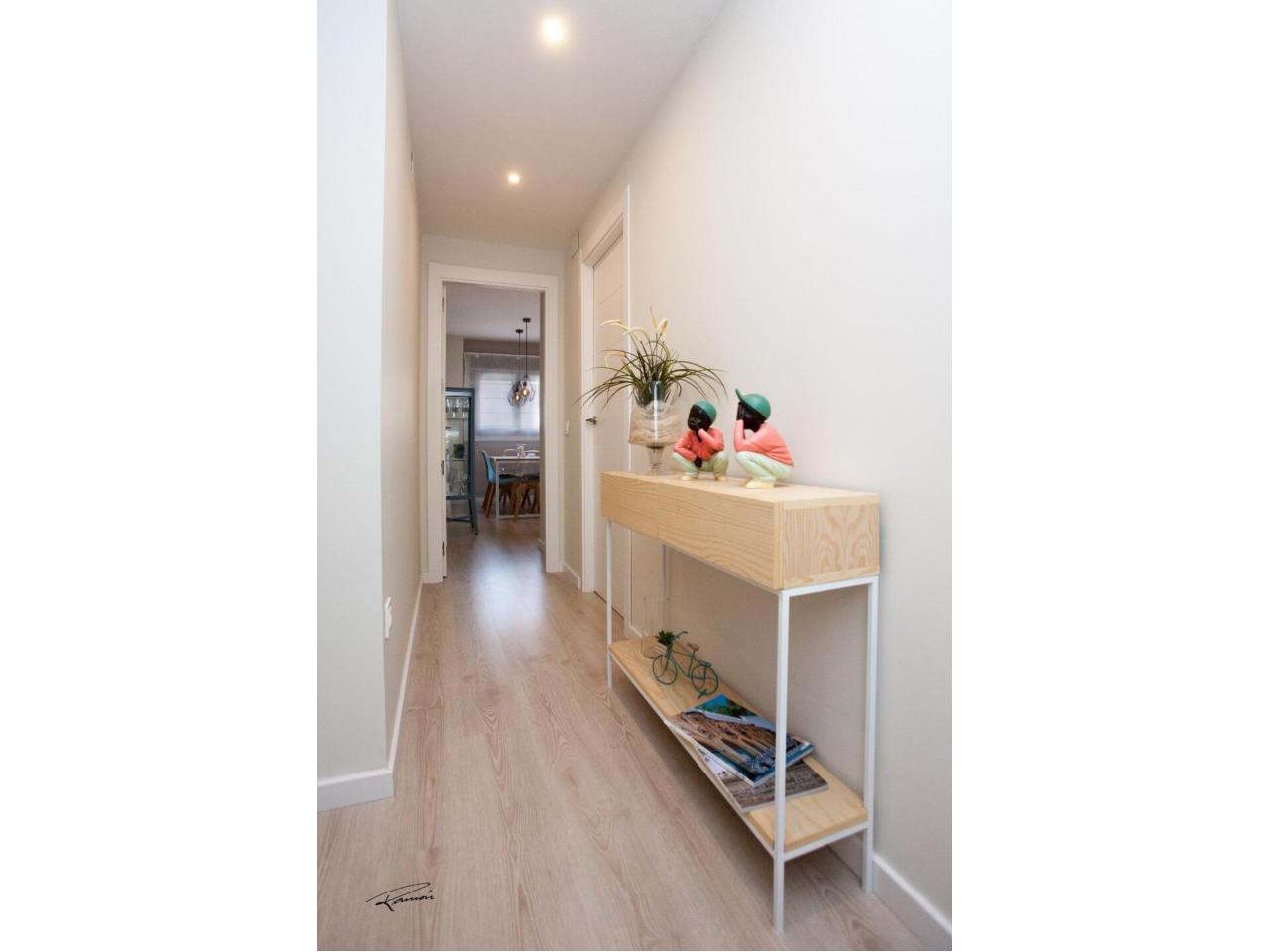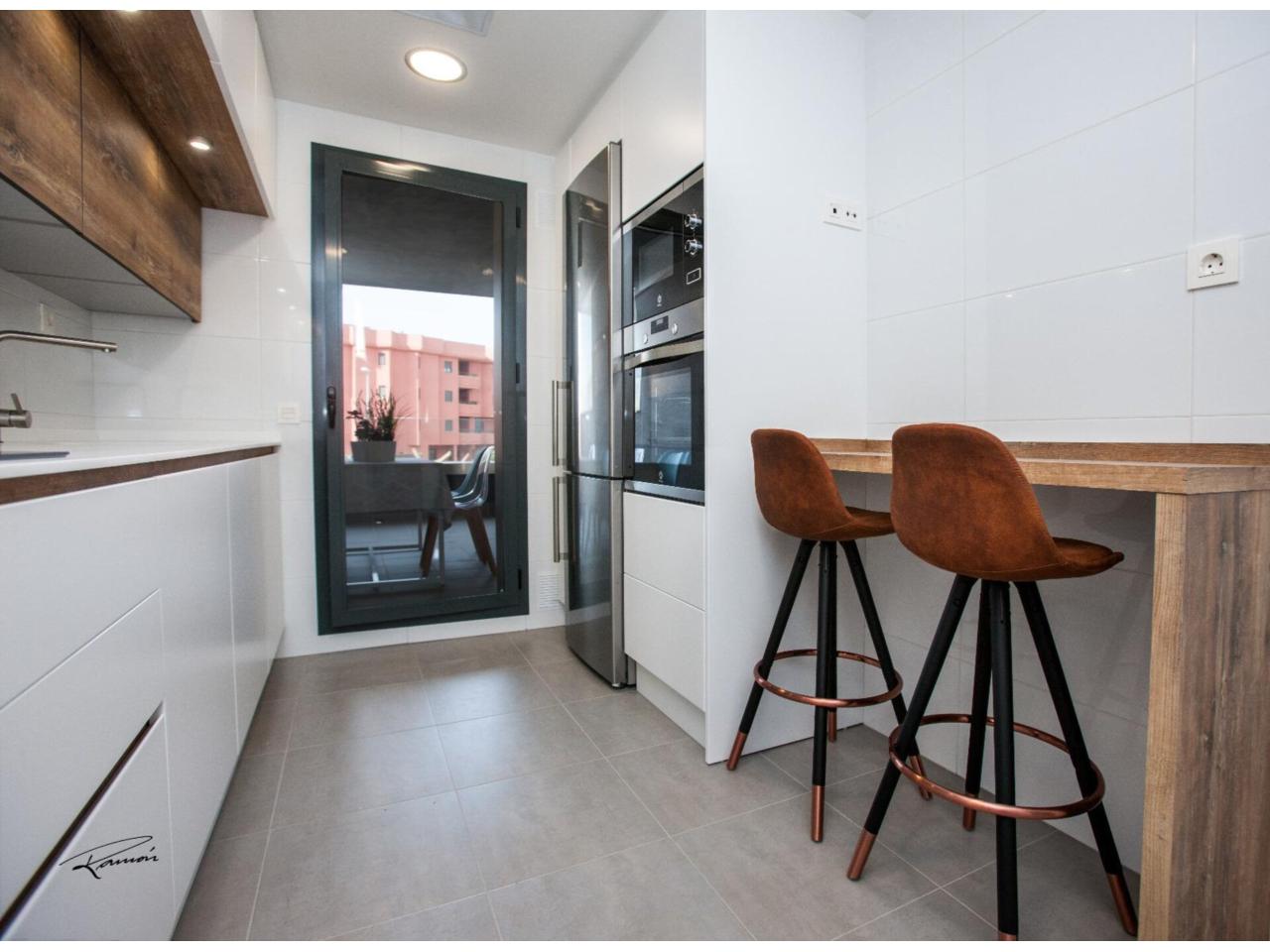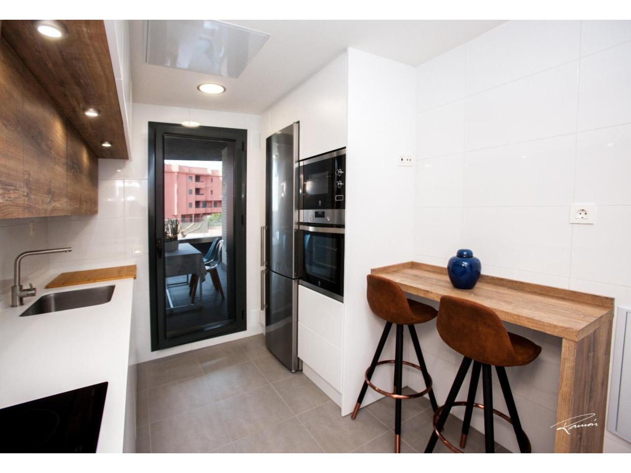 La vivienda se distribuye en un distinguido hall de entrada que da paso a un amplio y luminoso salón-comedor con acceso directo a una cuidada terraza, perfecta para disfrutar del clima. La cocina, totalmente equipada, combina funcionalidad y estilo. Cuenta con tres dormitorios con armarios empotrados y dos baños completos, diseñados con materiales de alta calidad.